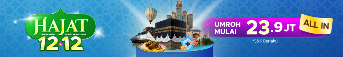 Dengan harga hemat, fasilitas premium, dan bonus lengkap, promo HAJAT 12.12 adalah pilihan paling tepat bagi Anda, keluarga, atau orang terkasih yang ingin memulai perjalanan spiritual dengan kualitas terbaik. Nikmati perjalanan yang nyaman, layanan yang terjamin, dan pengalaman yang menenangkan—semua dalam satu paket umroh hemat 12.12.